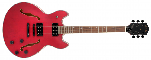 The Northstar Pro NSP5CH is a semi-acoustic guitar that blends classic materials with a warm, expressive aesthetic. Constructed entirely from Mahogany for the top, back, and sides, the guitar delivers a rich, resonant voice with excellent depth and balance. The semi-acoustic design allows the instrument to respond naturally to playing dynamics, making it well suited to nuanced, expressive performance.