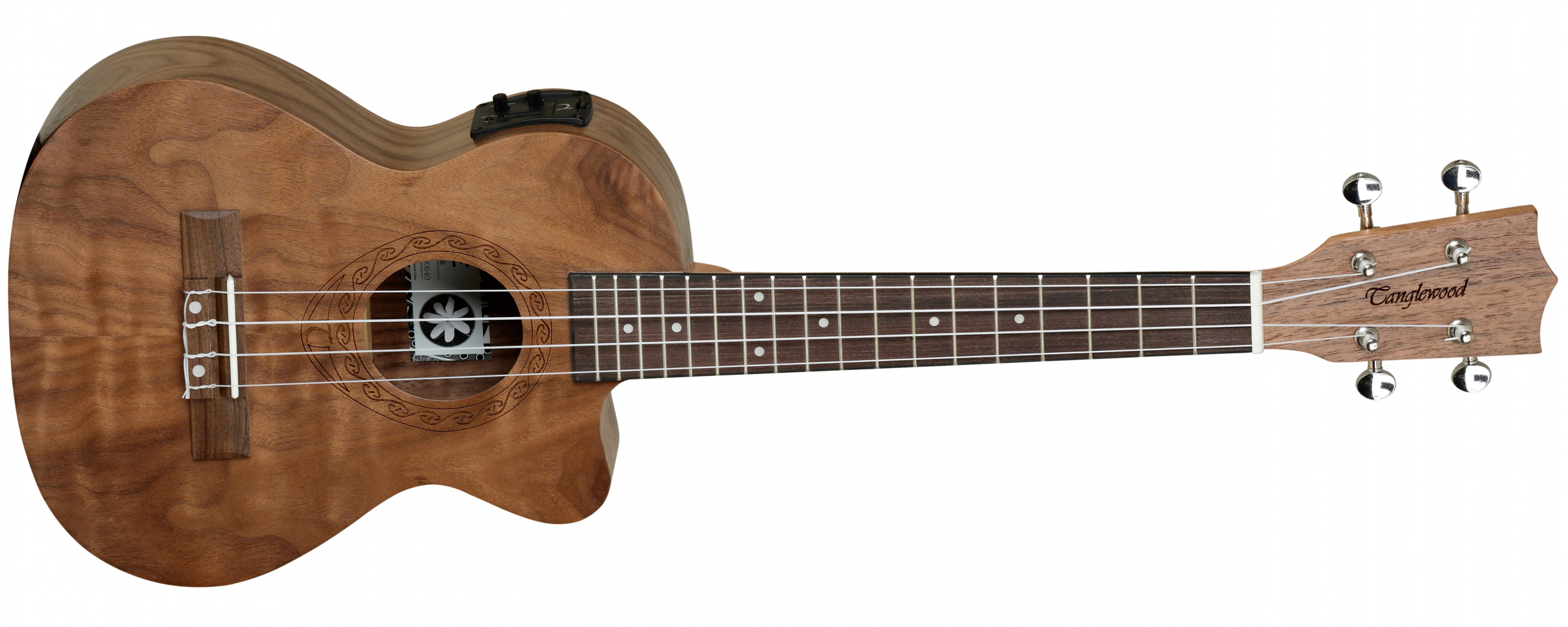 Crafted with Pacific walnut on the top, back, and sides, the TWT15E produces a tonal profile that is warm yet defined. Walnut delivers a balanced voice with a bright top end and a solid midrange, making it equally suitable for strumming, fingerpicking, and melodic solo work. The tenor body size enhances projection and sustain, giving this ukulele a fuller sound that works beautifully in both solo and group performances. Paired with Aquila Nylgut strings, the instrument offers reliable tuning stability and a smooth, responsive feel.