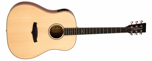 The range includes three distinct models: the Super Folk Cutaway, the Left-Handed Super Folk Cutaway, and the Sloped Shoulder Dreadnought. All three guitars share several defining features, starting with solid Engelmann spruce tops that provide a rich and resonant tone, paired with solid mahogany backs and sides to enhance warmth and depth of sound. The necks are topped with Indian rosewood fingerboards, delivering smooth playability and a touch of elegance, while the bridges are also crafted from Indian rosewood, contributing to the guitar’s tonal clarity.